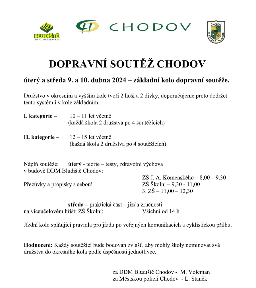Jde o akci, která je pořádána každoročně organizací BESIP, rozdělená na oblastní kola, krajská a celostátní. Oblastní kolo v Chodově již tradičně připravují Městská policie a Dům dětí a mládeže. Oblastní kolo je rozděleno na teoretickou a praktickou část. Teorie se zabývá znalostí dopravních předpisů se zaměřením na cyklisty a problematikou poskytování laické první pomoci. Praktická část obsahuje jízdu na kole po sestavené překážkové dráze. Soutěže se účastní všechny základní školy v Chodově ve smíšených družstev v daných kategoriích. Vítězové se zpravidla nominují do krajského kola, ze kterého se mohou probojovat až do kola celostátního.