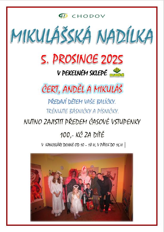 ČERT, ANDĚL A MIKULÁŠ PŘEDAJÍ DĚTEM VAŠE BALÍČKY. TRÉNUJTE BÁSNIČKY A PÍSNIČKY. NUTNO ZAJISTIT PŘEDEM ČASOVÉ VSTUPENKY.